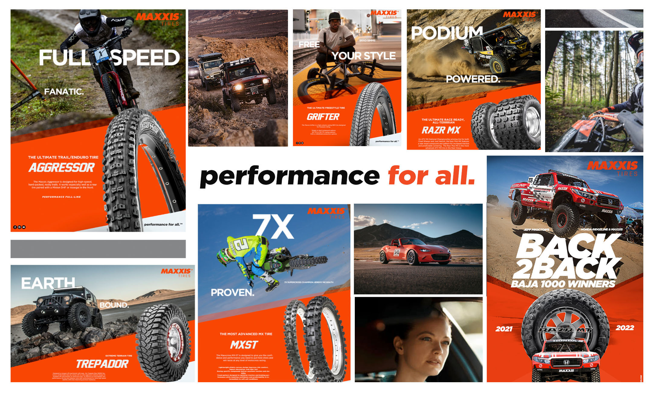 Blue C developed a strategic approach centered around its new tagline and positioning, “performance for all.” The goal was to create a strong awareness campaign of Maxxis’ total product line offering and their unwavering commitment to delivering exceptional performance across diverse driving and riding scenarios. It became the foundation of their marketing efforts, resonating with their target audience.